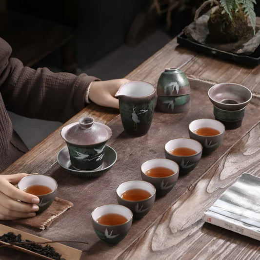 'Harmony in Flight' Chinese Crane Tea Set